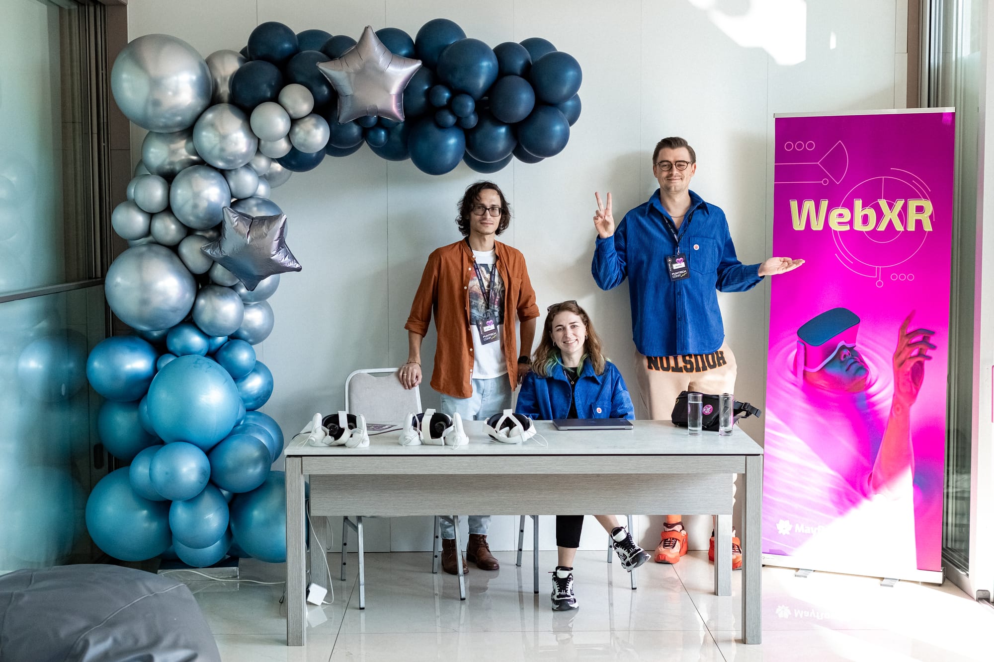 They use WebXR, which lets users access VR apps directly from their browser. WebXR is cross-platform, making the development process simpler. We also use React-Three-Fiber for intuitive coding and Vite to speed up builds and tests.