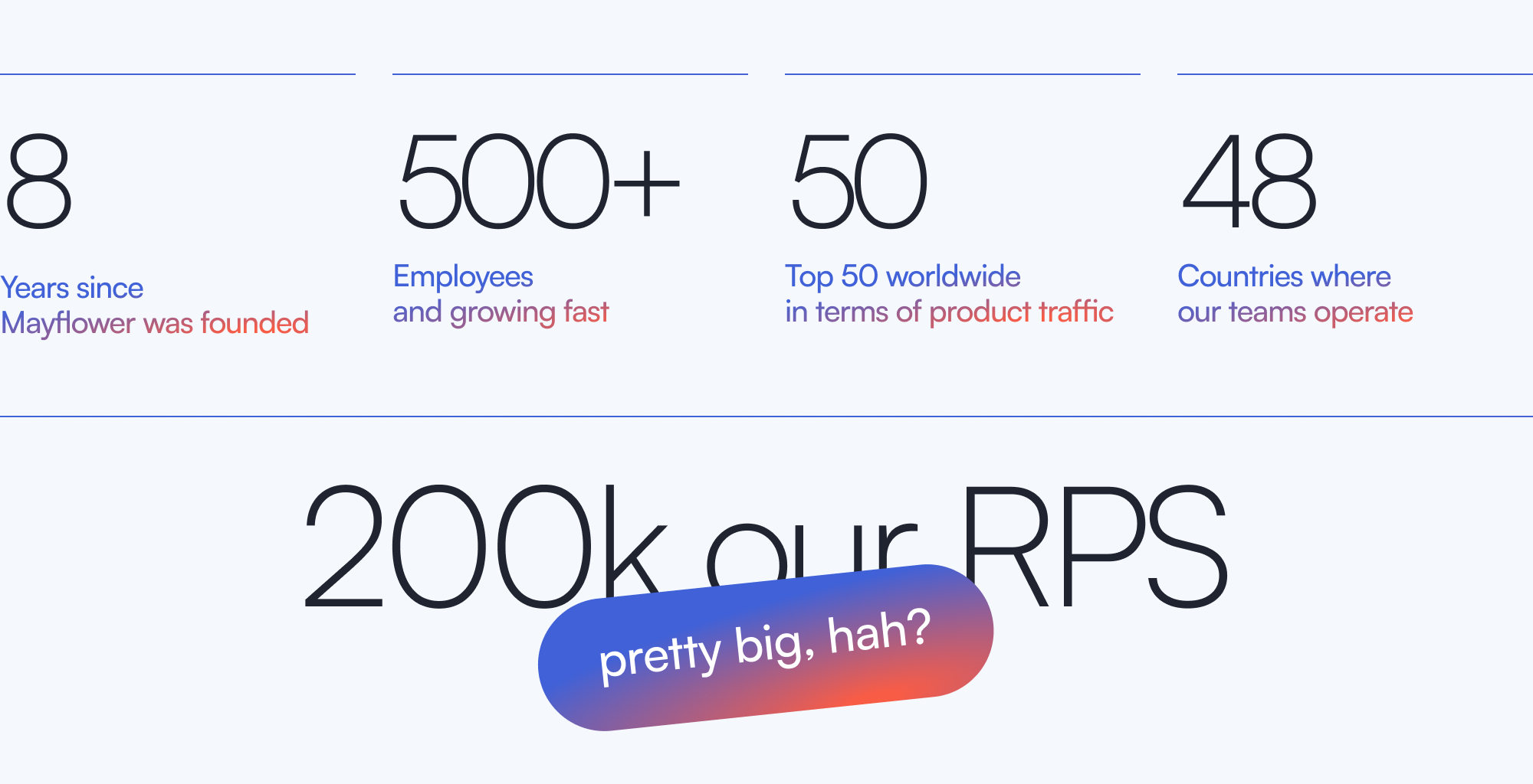 These guys build our entire infrastructure from scratch, without relying on external resources. Why? Because our site is in the top 50 globally for traffic, and we can’t adjust to third-party services—we need our own solutions.